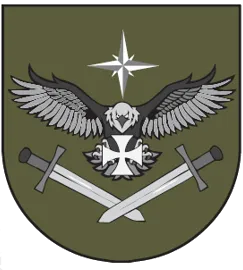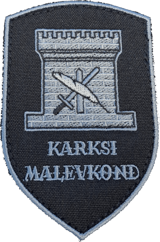 Embleemil on kujutatud Karksi lossi torni ette paigutatud ristamisi kuldne mõõk ja hanesulg, mis sümboliseerivad meie tahet võidelda vaenlasega nii sõnas kui relvaga.